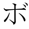 Podobnie jak każdy znak oznaczający sylabę z grupy H, ho może ulec udźwięcznieniu na dwa sposoby. Po dodaniu do obydwu wersji dakuten (ぼ i ボ) znak wymawia się jak bo, natomiast jeśli dopisze się do niego handakuten (ぽ i ポ), jest wymawiany jak po.