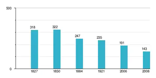 Wykres liczby ludności Hodyszewa od 1827 r.: