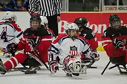 Hokej na lodzie na siedząco lub Hokej na sledżach (ang. Para ice hockey, wcześniej sledge hockey) – zespołowy sport dla niepełnosprawnych i sport integracyjny. Przeznaczony dla osób z porażeniem lub amputacją co najmniej jednej kończyny dolnej[1]. Hokej na lodzie jeszcze niedawno uprawiali w przypadku osób niepełnosprawnych wyłącznie mężczyźni. Obecnie mogą w niego także grać kobiety.