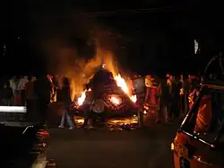 - Według innych mitów, holi to rocznica śmierci w płomieniach stosu ogniowego Holiki (dlatego pierwszego dnia holi palone są ogniska), która podstępnie próbowała uśmiercić poprzez spalenie Prahladę – gorliwego wielbiciela Wisznu.