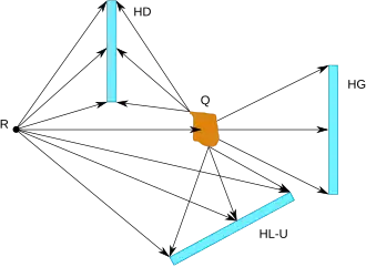 - HD – układ z wiązkami przeciwsobnymi (hologram Denisiuka) powstaje, gdy wiązki przedmiotowa i odniesienia docierają do ośrodka rejestrującego z przeciwnych stron.
