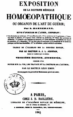 - ↑ Hahnemann S.: The Organon of the Healing Art. Wyd. 5th. 1833. ISBN 0-87983-228-2.