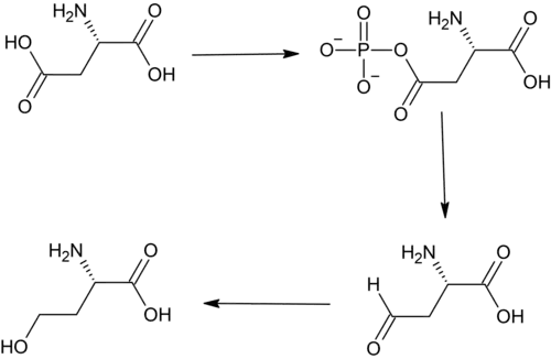 Homoseryna jest związkiem pośrednim podczas biosyntezy trzech aminokwasów egzogennych: metioniny, izoleucyny i treoniny (izomeru homoseryny). Powstaje w wyniku dwuetapowej redukcji grupy karboksylowej łańcucha bocznego kwasu asparaginowego[4].