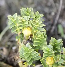 - Kuliste, żółte torebki o średnicy 6–10 mm, pękające trzema klapkami[8]. Zawierają nieliczne nasiona.