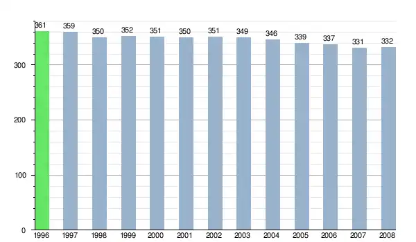 Według danych z dnia 31 grudnia 2012, wieś zamieszkiwały 324 osoby, w tym 170 kobiet i 154 mężczyzn[6].