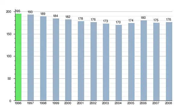 Zmiany liczby ludności w miejscowości Horné Mladonice od 1996 roku.