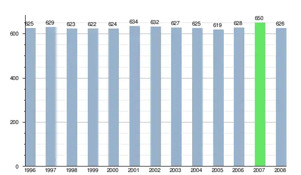 Według danych z dnia 31 grudnia 2012, wieś zamieszkiwało 607 osób, w tym 324 kobiety i 283 mężczyzn[7].