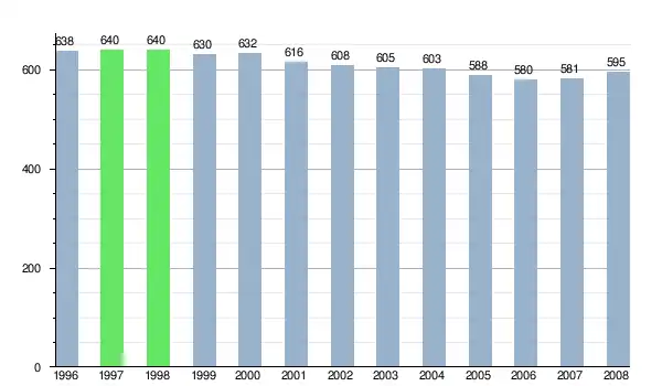 Według danych z dnia 31 grudnia 2012, wieś zamieszkiwały 602 osoby, w tym 309 kobiet i 293 mężczyzn[6].