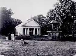 W 1801 roku wzniesiono tu murowano-ceglaną cerkiew unicką (możliwe, że był to kościół katolicki[9]) w stylu klasycystycznym. Jest to prostokątny budynek z zakrystiami po obu stronach części ołtarzowej. Jest przykryty dwuspadowym dachem tworzącym nad wejściem trójkątny fronton. Przednią fasadę stanowił sześciokolumnowy portyk w porządku doryckim z pilastrami i tryglifowymi belkowaniami (obecnie zamiast kolumn portyk podtrzymują kwadratowe filary). We wnętrzu nad wejściem jest chór[12].