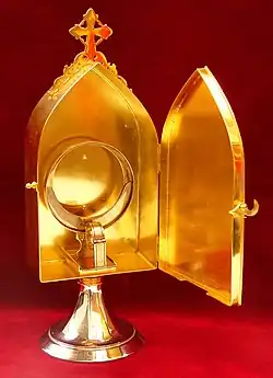 - ↑ Jacek Zjawin, Słowniczek Liturgiczny. Co to jest cyborium i kustodia? [online], przewodnik-katolicki.pl [dostęp 2024-01-18] (pol.).