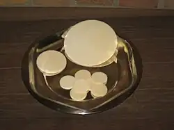 - małe hostie (komunikanty) – w czasie Eucharystii są rozdzielane wśród wiernych w ramach komunii świętej[1][2][4][6].