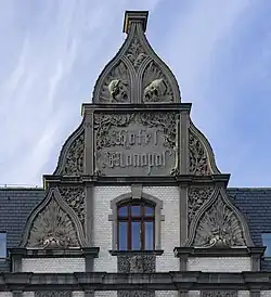 Tylne elewacje hotelu utrzymane są w czerwonej cegle[16].