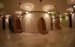 Na dwóch niskich poziomach znajdują się maszynownia, wyposażenie techniczne i pomieszczenia gospodarcze[3]. Na kolejnym, na wysokości 1014 m n.p.m.[2], mieści się taras widokowy, bufet oraz restauracja z kawiarnią[3]. Hotel, z 14 pokojami dla 56 gości[2], zajmuje czwarte i piąte piętro[3]. Na czwartym piętrze znajdują się również pokoje dla pracowników nadajnika i hotelu oraz dwa trzypokojowe mieszkania[2]. Wyższe kondygnacje mieszczą sprzęt łącznościowy[3]. Na siódmym i ósmym piętrze znajduje się zbiornik na wodę pitną oraz zasilacz awaryjny, a na dziewiątym pomieszczenie windy[2]. Powyżej umieszczono specjalne wahadło, którego ruch pochłania poprzeczne drgania wieży[2]. Całość wieńczy antena o wysokości 17 m[3].