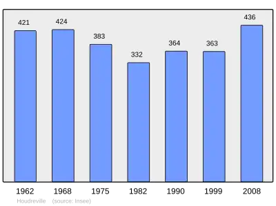 Według danych na rok 1990 gminę zamieszkiwały 364 osoby, a gęstość zaludnienia wynosiła 35 osób/km² (wśród 2335 gmin Lotaryngii Houdreville plasuje się na 693. miejscu pod względem liczby ludności, natomiast pod względem powierzchni na miejscu 578.).