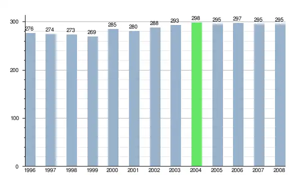Według danych z dnia 31 grudnia 2012, wieś zamieszkiwało 331 osób, w tym 178 kobiet i 153 mężczyzn[7].