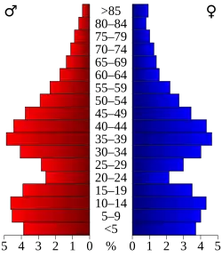 Przedział wiekowy populacji hrabstwa kształtuje się następująco: 30,2% osób poniżej 18. roku życia, 7,1% pomiędzy 18. a 24. rokiem życia, 32,2% pomiędzy 25. a 44. rokiem życia, 20,7% pomiędzy 45. a 64. rokiem życia oraz 9,8% osób powyżej 65. roku życia. Średni wiek populacji wynosi 34 lata. Na każde 100 kobiet przypada 103,9 mężczyzn. Na każde 100 kobiet powyżej 18. roku życia przypada 101,7 mężczyzn.