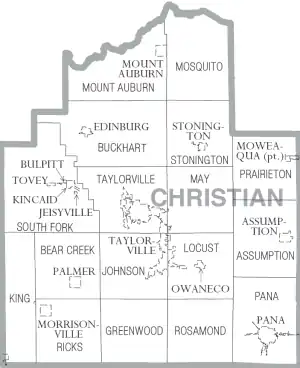 Hrabstwo Christian powstało w 1839 z czterech sąsiednich hrabstw: Macon, Shalby, Montgomery i Sangamon.