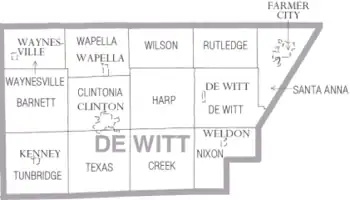 Hrabstwo DeWitt pierwotnie było zamieszkiwane przez Indian Kickapoo i Potawatomów. W 1820 roku na te tereny przybyli pierwsi biali osadnicy, Felix Jones, Prettyman Cud, William Cottrell, Samuel Glenn i rodziny Scott, Lundy i Coaps. Pierwszy budynek powstał w miejscu gdzie dziś znajduje się miasto Farmer przez Nathana Clearwater. Zion Shuges zbudował pierwszy młyn w hrabstwie. Kolejnymi osadnikami byli mieszkańcy Kentucky i Tennessee, lecz dopiero osadnicy z Ohio przyczynili się do znacznej rozbudowy hrabstwa. W 1835 wybudowano w Waynesville pierwszą szkołę i prezbiteriański kościół. 1839 rok jest datą powstania i zarejestrowania hrabstwa, które zostało wydzielone z dwóch innych hrabstw – Macon i McLean. Nazwa została nadana na cześć siódmego gubernatora stanu Nowy Jork, DeWitt Clintona.