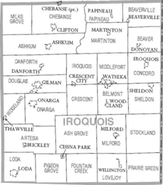 Hrabstwo Iroquois zostało utworzone w 1833 roku z terenów należących do hrabstwa Vermilion. Swoją nazwę przybrało od indiańskiej konfederacji północnoamerykańskich plemion Irokezów i jest jedynym hrabstwem w Stanach Zjednoczonych Ameryki, którego nazwa wywodzi się od rdzennych mieszkańców Ameryki.