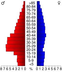 Przedział wiekowy populacji hrabstwa kształtuje się następująco: 18,30% osób poniżej 18 roku życia, 11,40% pomiędzy 18 a 24 rokiem życia, 34,00% pomiędzy 25 a 44 rokiem życia, 22,70% pomiędzy 45 a 64 rokiem życia oraz 13,60% osób powyżej 65 roku życia. Średni wiek populacji wynosi 37 lat. Na każde 100 kobiet przypada 149,0 mężczyzn. Na każde 100 kobiet powyżej 18 roku życia przypada 160,20 mężczyzn.