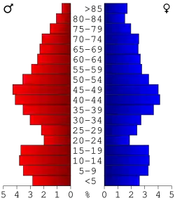 Przedział wiekowy populacji hrabstwa kształtuje się następująco: 23,9% osób poniżej 18. roku życia, 6,4% pomiędzy 18. a 24. rokiem życia, 25,8% pomiędzy 25. a 44. rokiem życia, 26% pomiędzy 45. a 64. rokiem życia oraz 18% osób powyżej 65. roku życia. Średni wiek populacji wynosi 42 lat. Na każde 100 kobiet przypada 98,5 mężczyzn. Na każde 100 kobiet powyżej 18. roku życia przypada 95,2 mężczyzn.
