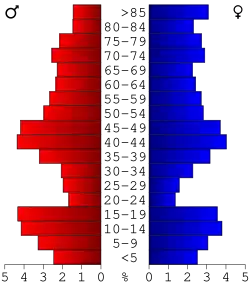 Przedział wiekowy populacji hrabstwa kształtuje się następująco: 24,5% osób poniżej 18. roku życia, 5,7% pomiędzy 18. a 24. rokiem życia, 22,7% pomiędzy 25. a 44. rokiem życia, 23,9% pomiędzy 45. a 64. rokiem życia oraz 23,2% osób powyżej 65. roku życia. Średni wiek populacji wynosi 43 lata. Na każde 100 kobiet przypada 98,6 mężczyzn. Na każde 100 kobiet powyżej 18. roku życia przypada 95,6 mężczyzn.