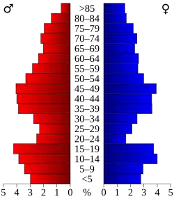 Przedział wiekowy populacji hrabstwa kształtuje się następująco: 25,4% osób poniżej 18. roku życia, 6,7% pomiędzy 18. a 24. rokiem życia, 24,7% pomiędzy 25. a 44. rokiem życia, 24,7% pomiędzy 45. a 64. rokiem życia oraz 18,5% osób powyżej 65. roku życia. Średni wiek populacji wynosi 40 lat. Na każde 100 kobiet przypada 103,2 mężczyzn. Na każde 100 kobiet powyżej 18. roku życia przypada 102,1 mężczyzn.