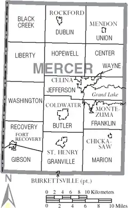 - ↑ Mercer County, Ohio Population Census 2010 and 2000 Interactive Map, Demographics, Statistics, Graph. CensusViewer. [dostęp 2018-08-10]. (ang.).
