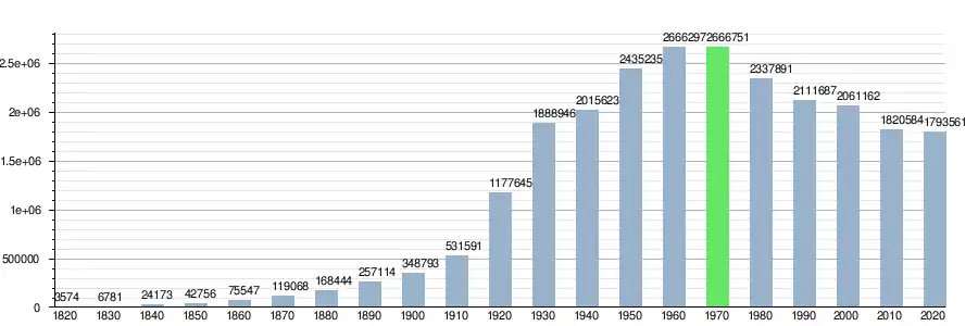 Od 1970 do 2020 roku hrabstwo utraciło 32,7% swojej populacji. Według danych pięcioletnich z 2022 roku, 48,7% populacji hrabstwa stanowiła ludność biała nielatynoska, 37,6% to ludność czarna lub Afroamerykanie, 6,3% stanowili Latynosi jakiejkolwiek rasy, 5,2% było rasy mieszanej, 3,5% to Azjaci, 0,3% to rdzenna ludność Ameryki i 0,02% pochodziło z wysp Pacyfiku[6]. 9,4% mieszkańców urodziło się poza granicami Stanów Zjednoczonych[2].