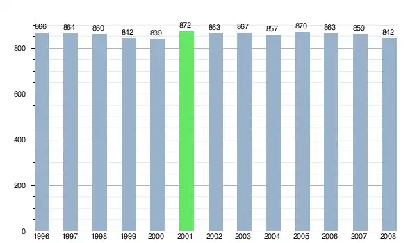Według danych z dnia 31 grudnia 2012, wieś zamieszkiwało 870 osób, w tym 450 kobiet i 420 mężczyzn[6].