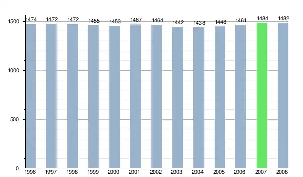 Według danych z dnia 31 grudnia 2012, wieś zamieszkiwało 1438 osób, w tym 737 kobiet i 701 mężczyzn[6].