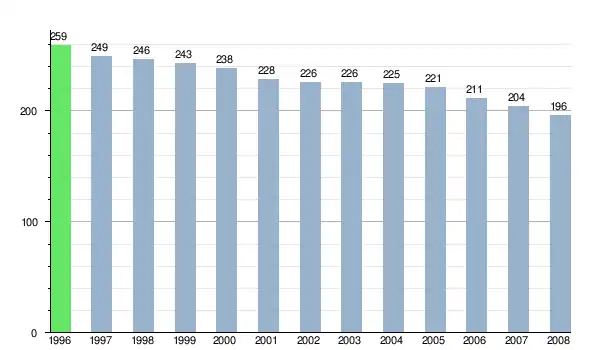 Według danych z dnia 31 grudnia 2012, wieś zamieszkiwało 199 osób, w tym 100 kobiet i 99 mężczyzn[6].
