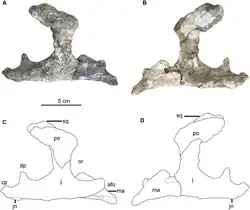 Kość nadkątowa powierzchnią boczną przypomina kość zębową, odróżniając się od swego homologu u Yinlong. Podobna cecha przysługuje kości kątowej[1].