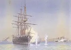 - ↑ Paweł Piotr Wieczorkiewicz: Historia wojen morskich. Wiek pary, Wydawnictwo Puls, Londyn 1995, ISBN 1-85917-030-7 (vol. I & II), s. 225. Pierwszego „skutecznego” użycia torpedy dokonał rosyjski admirał (wówczas jeszcze komandor porucznik) Stiepan Makarow, który kilka miesięcy po potyczce pod Ilo, 25 stycznia 1878 roku zatopił za pomocą torpedy niewielką turecką kanonierkę „İntibah” (s. 245 tamże).