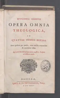 - De veritate religionis Christianae (O prawdziwości religii chrześcijańskiej), 1627