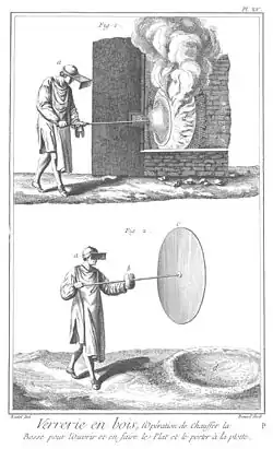 Pierwsze wyroby z materiałów podobnych do współcześnie znanego szkła wytwarzano w różnych miejscach na świecie, m.in. w Fenicji[1] już w III tysiącleciu p.n.e., przez wlewanie roztopionego szkła do form. Technika ta upowszechniła się w Egipcie, a około V wieku p.n.e. także w Grecji. Technikę wydmuchiwania szkła z kęsa stopionego szkła zaczerpniętego z pieca szklarskiego opracowano około I wieku p.n.e., w tym też czasie powstały pierwsze warsztaty szklarskie, w których wykorzystywano tę technologię.