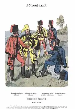W Rosji generał hr. von Münnich był za panowania carycy Anny Iwanowny twórcą pierwszych pułków husarskich. Początkowo złożone z serbskich emigrantów z Austrii, potem rekrutowano je także z Węgrów, Wołochów, Mołdawian i Gruzinów, tak że w 1740/41 istniało już 5 regimentów noszących odpowiednie nazwy. Istotną rolę w ich tworzeniu odegrał inny powstańczy oficer Rakoczego – Ádám Máriássy. Dalsze jednostki pułkowe, których w 1761 było 12, rekrutowano na ogół spośród zbiegłych spod panowania tureckiego Serbów, ale także z Macedończyków i Bułgarów, a ostatecznie i z rosyjskich kozaków.