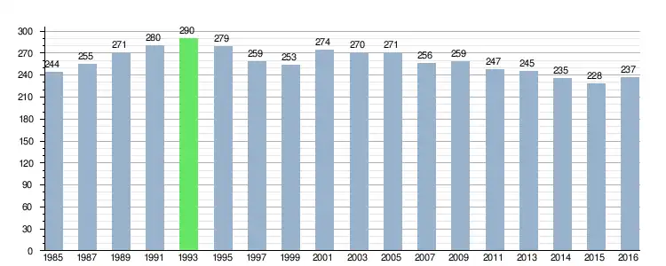 - 1 2 3 4 5 6 7 Population by sex, age and village/city, 1th January (1985-2016). Hagstova. [dostęp 2017-01-19]. (ang.).