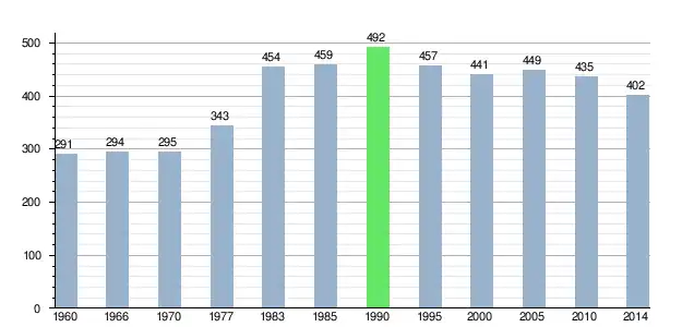 Dane dotyczące liczby ludności gminy zbierane były wcześniej, jednak dostępne są informacje od roku 1960[3]. Wówczas wynosiła ona 291 osób[3] i szybko rosła, osiągając w 1990 roku wartość 492 mieszkańców[2]. Od tamtej pory jednak sukcesywnie maleje, co w latach 90. miało związek z kryzysem gospodarczym na Wyspach Owczych[6], a obecnie spowodowane jest izolacją i częstymi migracjami[2].