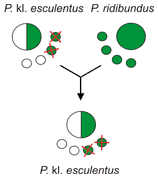 W systemie L-E P. kl. esculentus muszą krzyżować się z P. lessonae, żeby powstały nowe hybrydy, w systemie R-E z P. ridibundus (ilustracja z lewej strony)[8][11]. P. lessonae i P. ridibundus mają odmienne wymagania w stosunku do środowiska i zwykle nie występują razem[12].