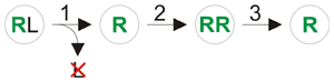 | L, R – haploidalne genomy P. lessonae i ridibundus * tylko samice (komórki jajowe) | ||||||||||||||||||||||||||||||||||||