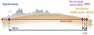 - Wiązka neutrin będzie wytwarzana w kompleksie akceleratorów J-PARC (ang. Japan Proton Accelerator Research Complex, 36°26′42″N 140°36′22″E/36,445000 140,606000) i badana przez układ bliskich detektorów oraz pośredni detektor, wszystkie zlokalizowane w miejscowości Tōkai, w prefekturze Ibaraki, na wschodnim wybrzeżu Japonii[3].