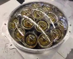 - Październik 2023: Ukończenie głównej części kopuły komory detektora HK[31]