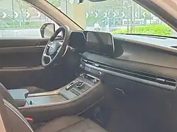 Kabina pasażerska umożliwia transport do 8 pasażerów w trzech rzędach siedzeń, a także wyposażono ją w liczne systemy bezpieceństwa i udogodnienia dla podróżujących. Centralnym punktem deski rozdzielczej jest duży, 10,25-calowy ekran dotykowy umożliwiający dostęp do systemu multimedialnego[8], z kolei w tunelu środkowym zamiast tradycyjnej dźwigni zamntowano przełączniki zmiany trybów jazdy znane dotychczas tylko z modeli o napędzie elektrycznyn.