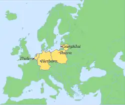 - ↑ Jerzy Skibiński: Starostwa dziedziczne Prus Książęcych w XVII i XVIII wieku. Studium z dziejów przeobrażeń społeczno-ustrojowych. Wydawnictwo „Pojezierze”, Olsztyn 1972, s. 44.