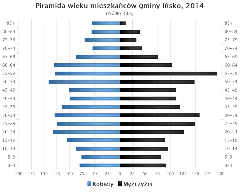 - Piramida wieku mieszkańców gminy Ińsko w 2014 roku[1].