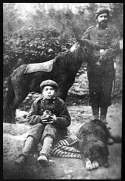 - ↑ na zdjęciu parada funkcjonariuszy celno-skarbowej formacji Carabineros w miejscu znanym jako Enderlaza, na pograniczu prowincji Nawarra i Gipuzkoa (rok 1928). W roku 1873 partyzancki oddział karlistów, dowodzony przez księdza Manuela Santa Cruz, zaatakował tu posterunek Carabineros. Twierdząc, że obrońcy w trakcie walki wywiesili białe flagi by wciągnąć napastników w zasadzkę, Santa Cruz rozkazał egzekucję 35 karabinierów, którzy się poddali. Epizod ten - obok zrabowania i częściowego spalenia miasta Cuenca - był potem jednym z najczęściej przywoływanych w debacie publicznej przykładów okrucieństwa i prymitywizu karlistów