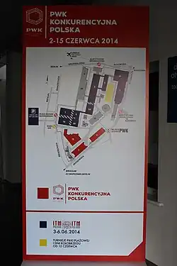 - ↑ W materiałach dotyczących wydarzenia stosowano zamiennie nazwy: II Powszechna Wystawa Krajowa, II Powszechna Wystawa Krajowa "Konkurencyjna Polska" oraz PWK Konkurencyjna Polska (zobacz: oficjalna strona internetowa wystawy - dostęp: 15 czerwca 2014, strona internetowa Prezydenta RP - dostęp: 15 czerwca 2014)