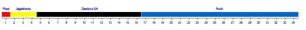 | 8 | Piast Gliwice | 34 | 13 | 6 | 15 | 42 | 35 | +7 | 45 | PIA–ŚLĄ 3:0 ŚLĄ–PIA 2:0 | |
