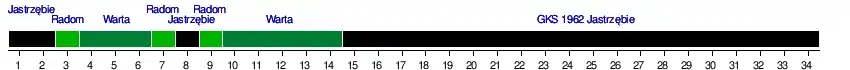 | GKS 1962 Jastrzębie | 1 | 1 | 3 | 3 | 3 | 3 | 3 | 1 | 3 | 3 | 3 | 3 | 3 | 3 | 1 | 1 | 1 | 1 | 1 | 1 | 1 | 1 | 1 | 1 | 1 | 1 | 1 | 1 | 1 | 1 | 1 | 1 | 1 | 1 |